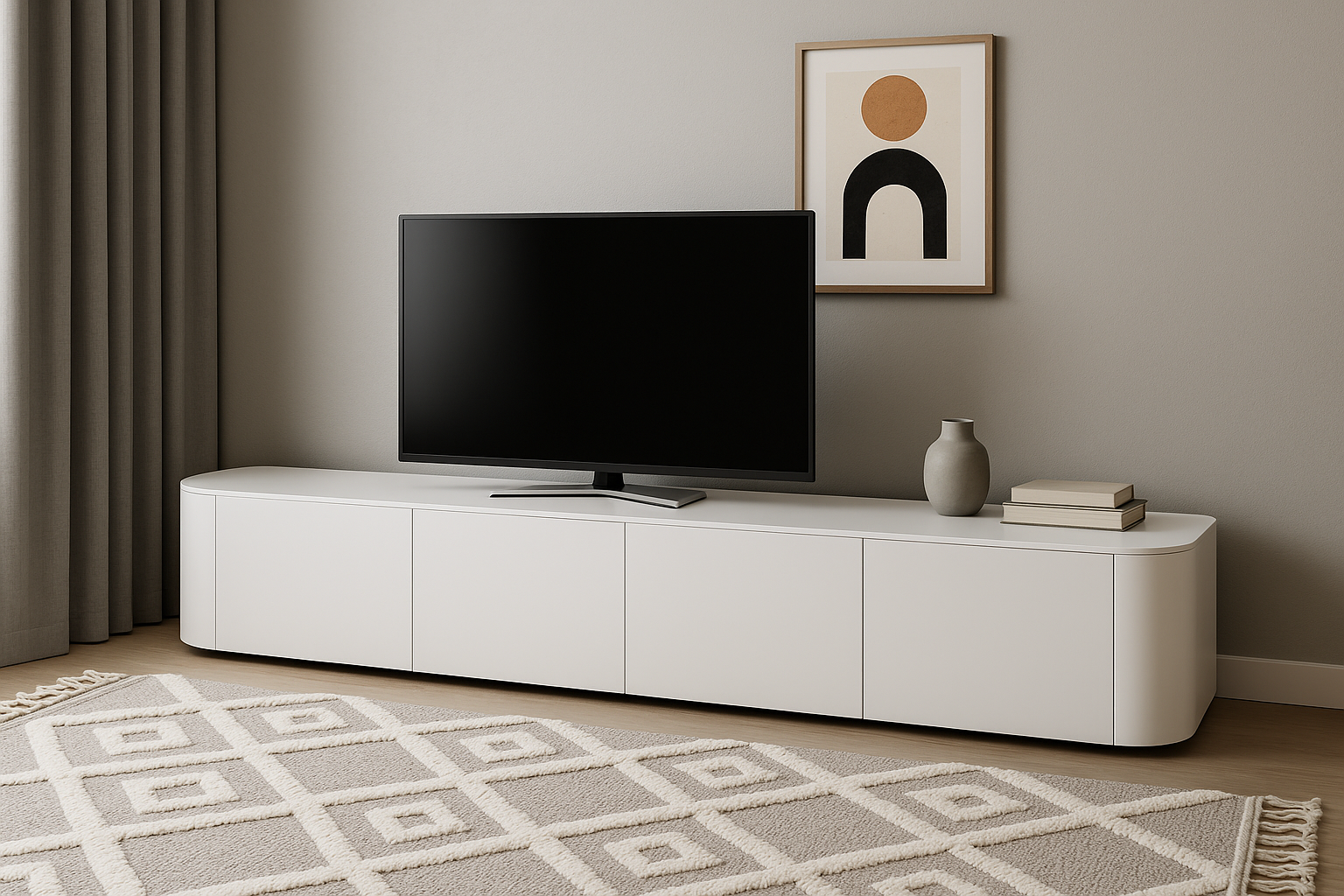 Bring elegance and simplicity into your living space with the Novera Luna TV Stand. Designed with smooth rounded edges and a clean white finish, this piece combines modern minimalism with timeless style. The spacious compartments provide hidden storage for media devices, consoles, and accessories, keeping your home neat and clutter-free.